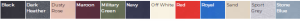 Black, Dark Heather, Dusty Rose, Maroon, Military Green, Navy, Off White, Red, Royal, Sand, Sports Grey, Stone Blue