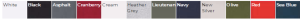 White, Black, Asphalt, Cranberry, Cream, Heather Grey, Lieutenant, Navy, New Silver, Olive, Red, Sea Blue