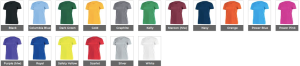 | Color | Black, Columbia Blue, Dark Green, Gold, Graphite, Kelly, Maroon Navy, Orange, Power Blue, Power Pink, Purple, Royal, Safety Yellow, Scarlet, Silver, White |