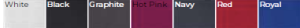 White, Black, Graphite, Hot Pink, Navy, Red, Royal