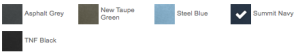| Color | Asphalt Grey, New Taupe Green, Steel Blue, Summit Navy, TNF Black |