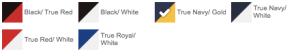 Black/True Red, Black/White, True Navy/Gold, True Navy/White, True Red/White, True Royal/White