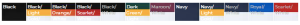 | Color | Black, Black/Gold, Black/Orange, Black/Scarlet, Black/White, Dark Green/Light Gold/White, Maroon/White, Navy, Navy/Light Gold/White, Navy/White, Royal/White, Scarlet/White |