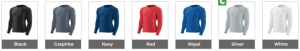 Black, Graphite, Navy, Red, Royal, White