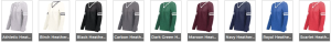 Athletic Heather, Birch Heather, Black Heather, Carbon Heather, Dark Green Heather, Maroon Heather, Navy Heather, Royal Heather, Scarlet Heather