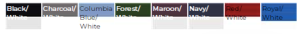 | Color | Black/Gold, Black/Red, Black/White, Charcoal/White, Columbia Blue/White, Forest/White, Kelly/White, Maroon/White, Navy/White, Red/White, Royal/Gold, Royal/White |