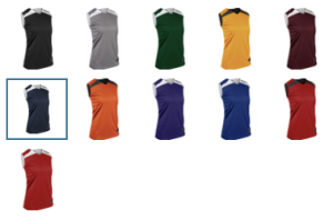 Black/White, Charcoal/White, Forest Green/White, Gold/Black, Maroon/White, Navy/White, Orange/Black, Purple/White, Royal/White, Scarlet/Black, Scarlet/White