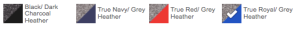 92/8 poly/PU spandex jersey front panels; 95/5 poly/PU spandex mesh mid and back panels (Grey Heather), 95/5 poly/PU spandex jersey front panels; 95/5 poly/PU spandex mesh and mid back panels (Dark Charcoal Heather)