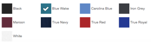 | Color | Black, Blue Wake, Carolina Blue, Iron Grey, Maroon, True Navy, True Red, True Royal, White |