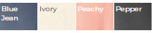 Blue Jean, Ivory, Peachy, Pepper