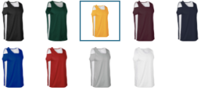 Black/White, Dark Green/White, Gold/White, Maroon/White, Navy/White, Royal/White, Red/White, Silver/White, White/White