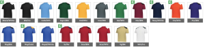 Black/Iron, Black/White, Columbia Blue/White, Dark Green/Black, Gold/White, Iron/White, Kelly/White, Maroon/Black, Navy/White, Orange/White, Purple/Black, Royal/Black, Royal/Gold, Royal/White, Red/Black, Red/Navy, Red/White, Vegas Gold/Black, White/Iron