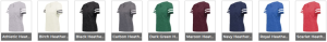 Athletic Heather, Birch Heather, Black Heather, Carbon Heather, Dark Green Heather, Maroon Heather, Navy Heather, Royal Heather, Scarlet Heather