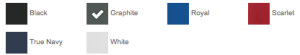 Black, Graphite, Royal, Scarlet, True Navy, White