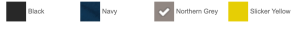 | Color | Black, Navy, Northern Grey, Slicker Yellow |