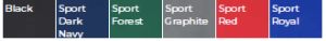 Black, Sport Dark Navy, Sport Forest, Sport Graphite, Sport Red, Sport Royal