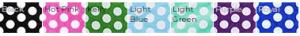 Black, Hot Pink, Kelly, Light Blue, Light Green, Purple, Royal