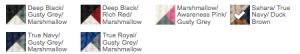 Deep Black/ Gusty Grey/ Marshmallow, Deep Black/ Rich Red/ Marshmallow, Marshmallow/ Awareness Pink/ Gusty Grey, Sahara/ True Navy/ Duck Brown, True Navy/ Gusty Grey/ Marshmallow, True Royal/ Gusty Grey/ Marshmallow