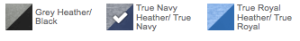 | Color | Grey Heather/ Black, True Navy Heather/ True Navy, True Royal Heather/ True Royal |