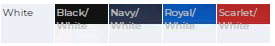 | Color | White, Black/White, Navy/White, Royal/White, Scarlet/White |