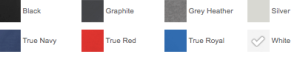 | Color | Black, Graphite, Grey Heather, Silver, True Navy, True Red, True Royal, White |