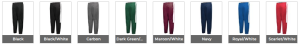 Black, Black/White, Carbon, Dark Green/White, Maroon/White, Navy, Royal/White, Scarlet/White