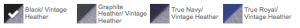 | Color | Black/Vintage Heather, Graphite Heather/Vintage Heather, True Navy/Vintage Heather, True Royal/Vintage Heather |