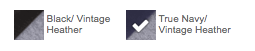 | Color | Black/Vintage Heather, True Navy/Vintage Heather |