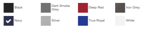 | Color | Black, Dark Smoke Grey, Deep Red, Navy, True Royal, White |