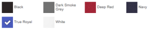 Black, Dark Smoke Grey, Deep Red, Navy, True Royal, White