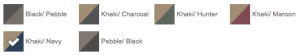 Black/Pebble, Khaki/Charcoal, Khaki/Hunter, Khaki/Maroon, Khaki/Navy, Pebble/Black
