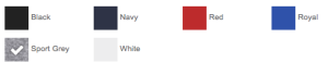 Black, Navy, Red, Royal, Sport Grey, White