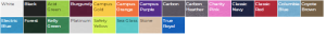 White, Black, Acid Green, Burgundy, Campus Gold, Campus Orange, Campus Purple, Carbon, Carbon Heather, Charity Pink, Classic Navy, Classic Red, Columbia Blue, Coyote Brown, Electric Blue, Forest, Platinum, Safety Yellow, Sea Glass, Stone, True Royal