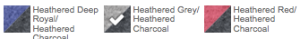Heather Deep Royal/Heather Charcoal, Heather Grey/Heather Charcoal, Heather Red/Heather Charcoal